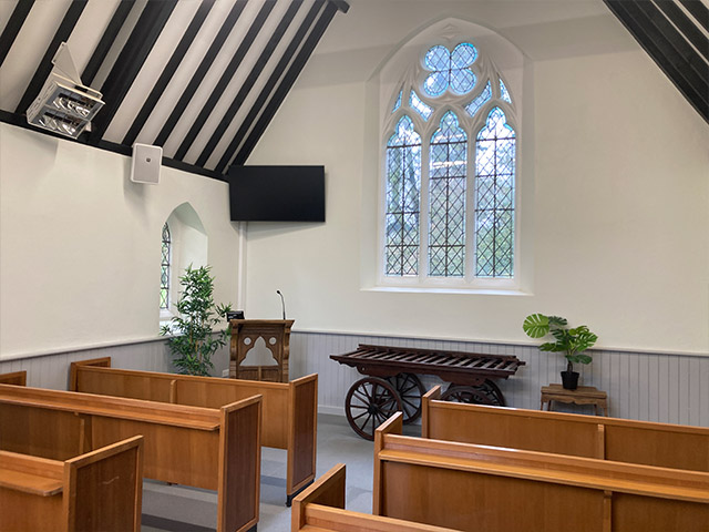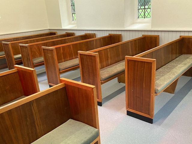 The main chapel can accommodate up to 60 people, with capacity for an additional 30 people to watch the service on a screen in the neighbouring chapel.