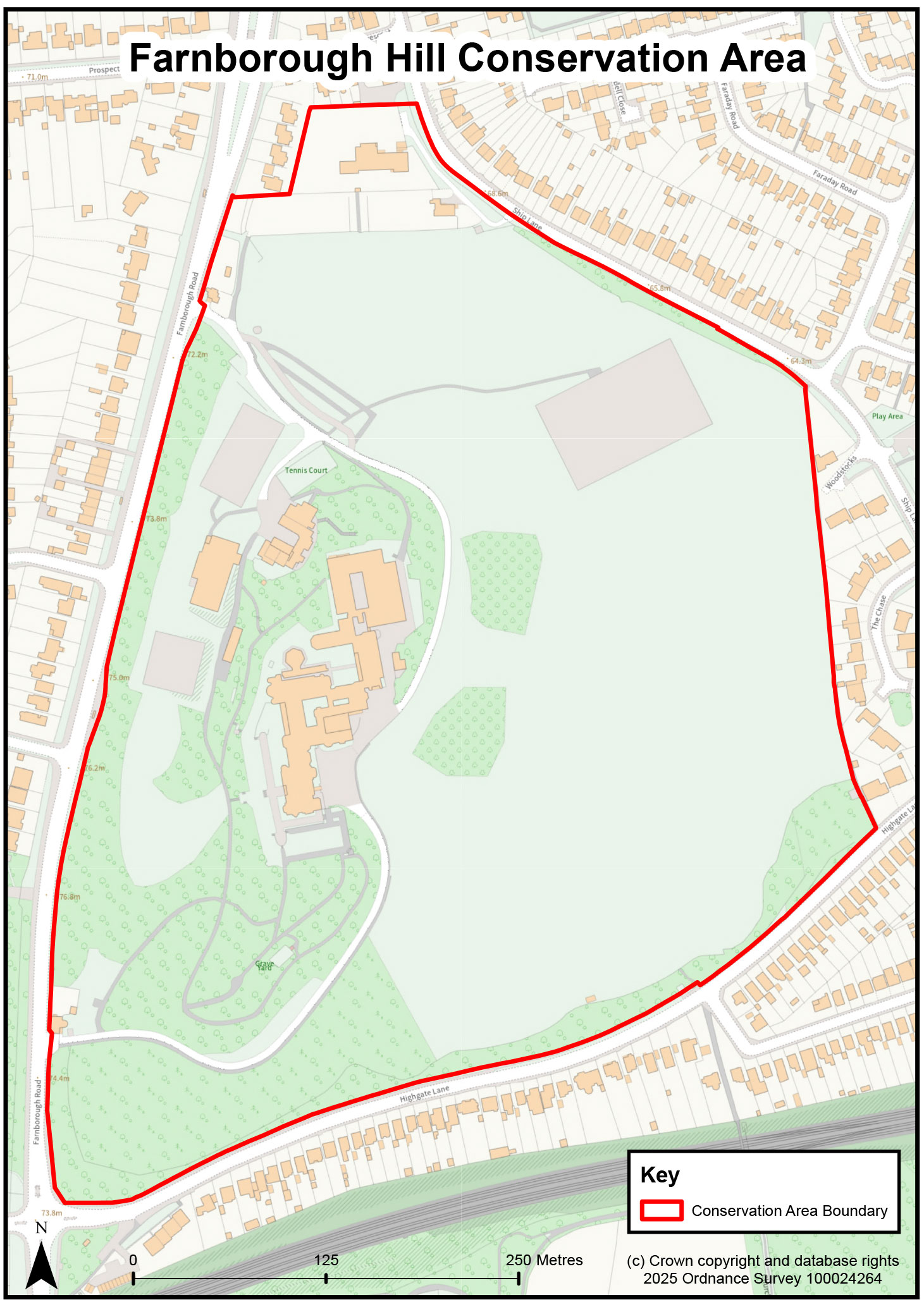 Farnborough Hill Conservation Area is now focused on Farnborough Hill School and its grounds. We have adopted a Character Appraisal and Management Plan that sets out the special architectural and historic interest of the conservation area and which justifies its designation as a heritage asset. The document will be a material consideration in planning decisions within the conservation area.