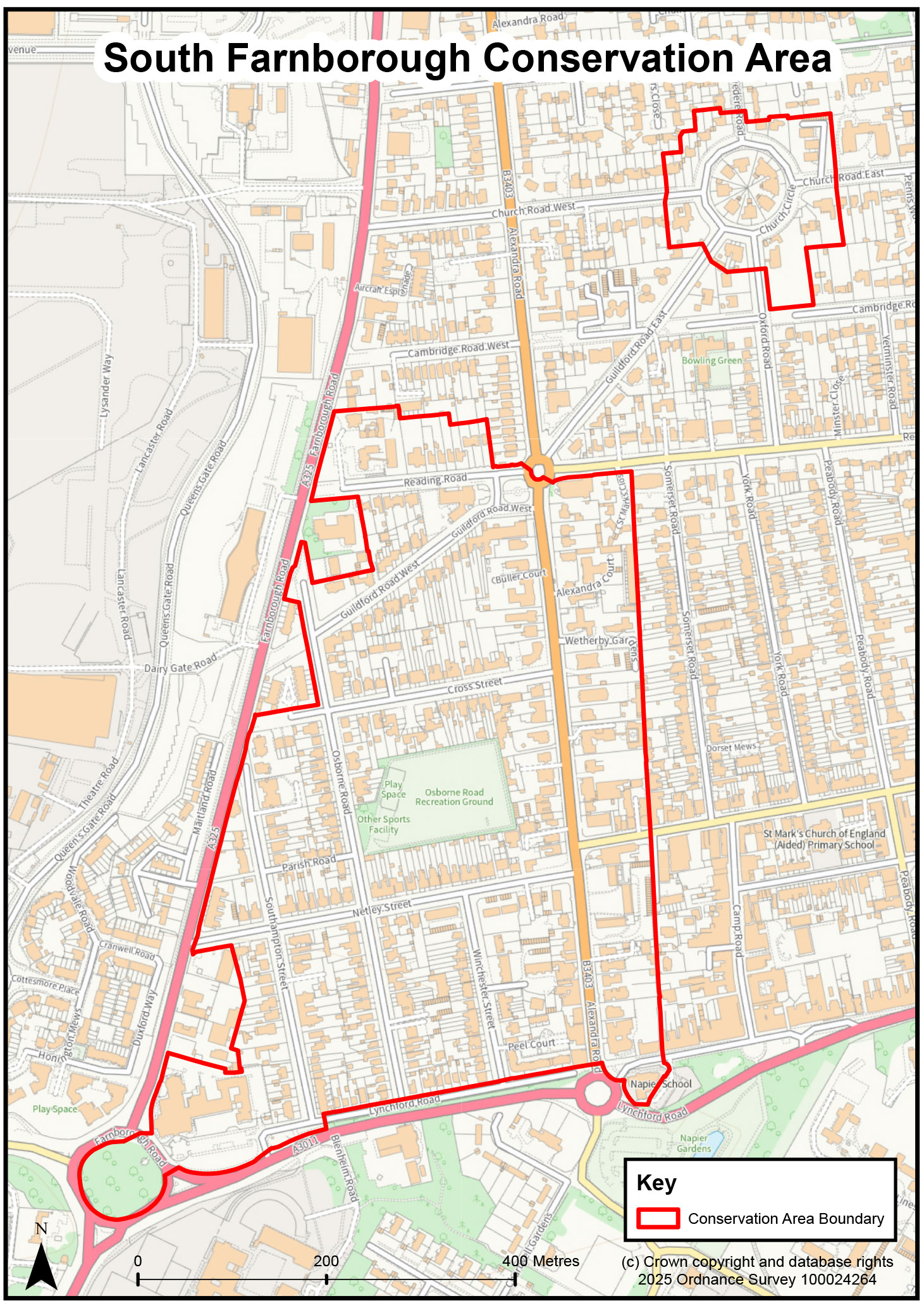 The South Farnborough Conservation Area was first designated in 1987 and reviewed in 2025.